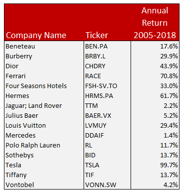 As promised, below is a short list of companies who cater specifically to the wealthy class of consumers. This list is quite different than the one the authors presented in 2005, but that should not be a surprise. Companies get taken over, or merge with larger rivals. But their brands remain intact, and the wealthy consumers remain loyal to them.