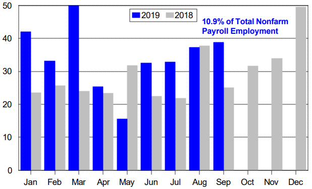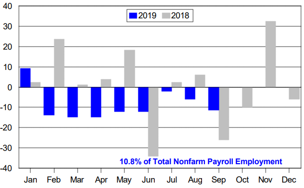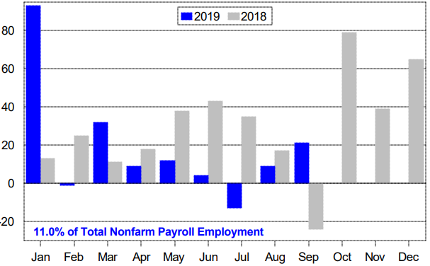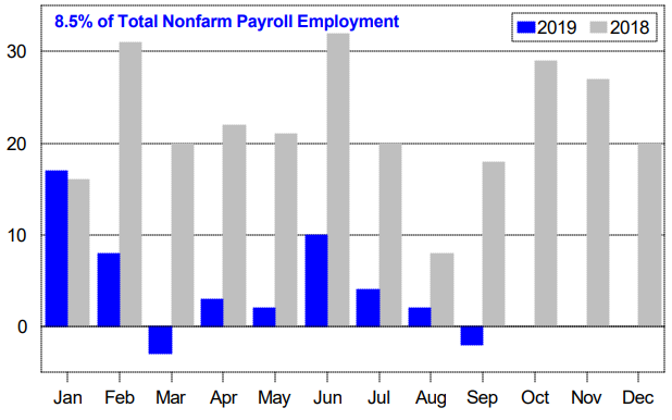 Leisure & hospitality is 11% of the U.S. work force. The numbers for this year look weak compared to last year.